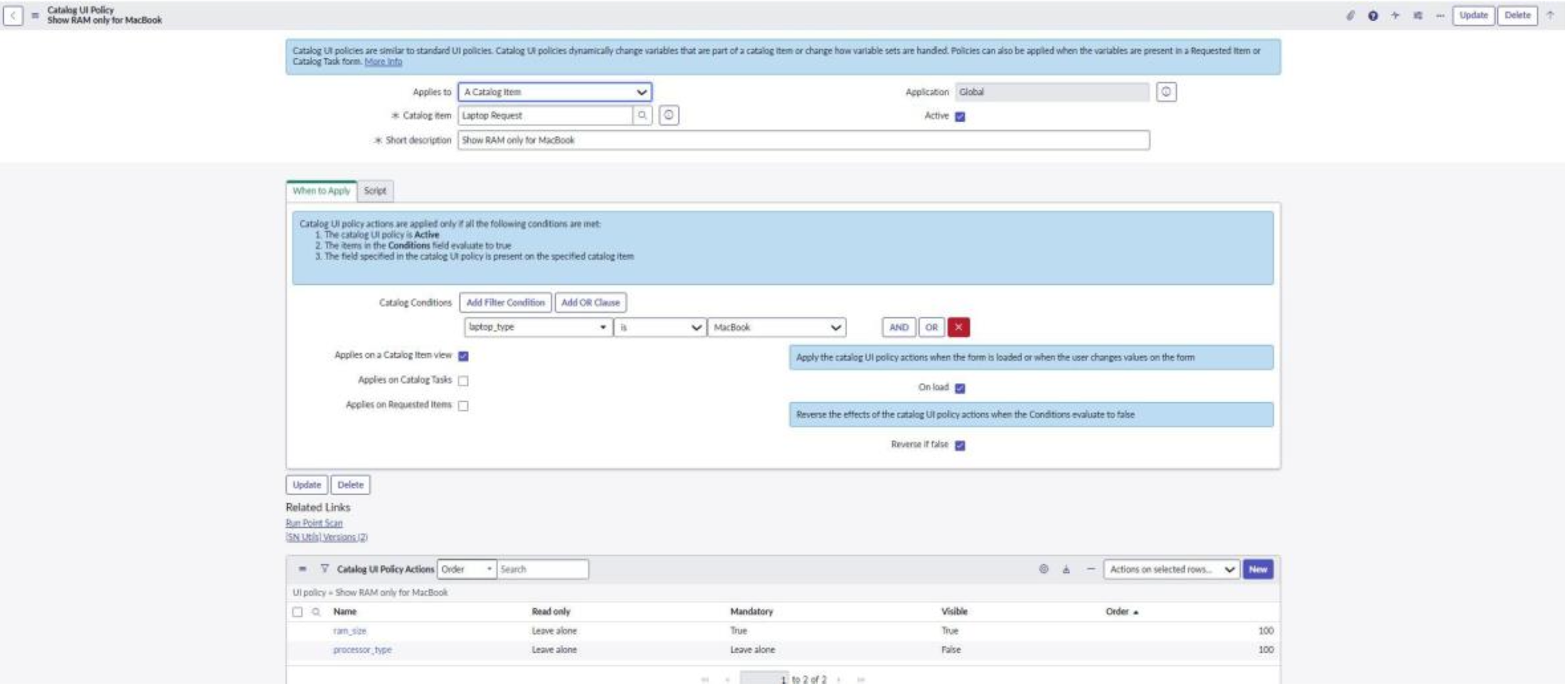 Which is Better Here? Use OOB (Catalog UI Policies) first. UI Policies are: