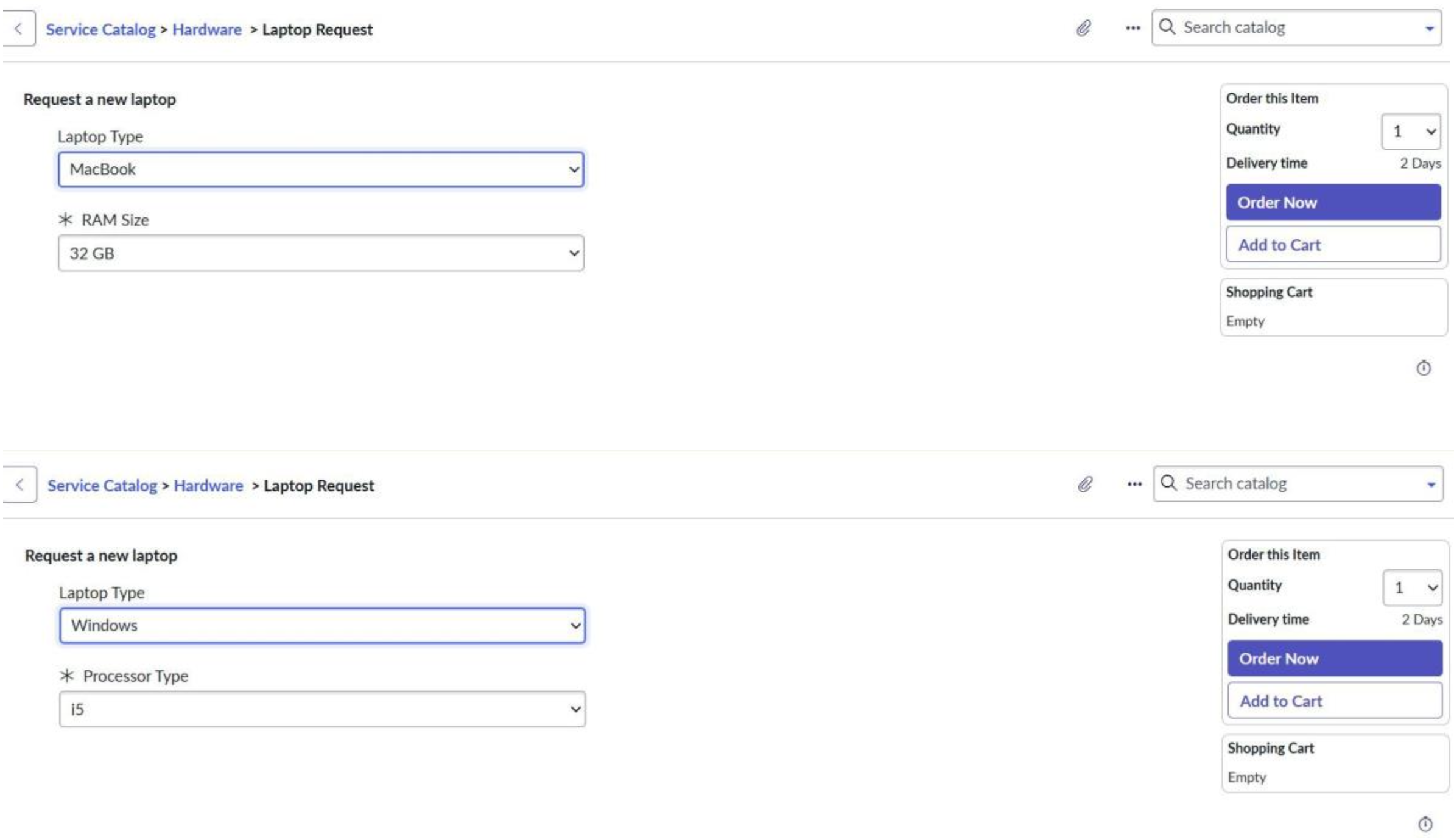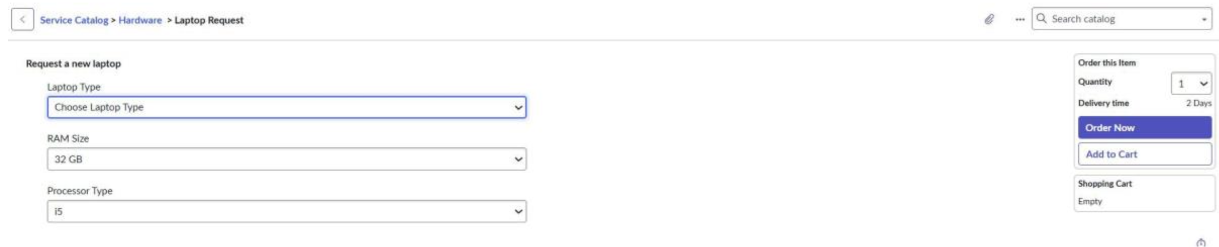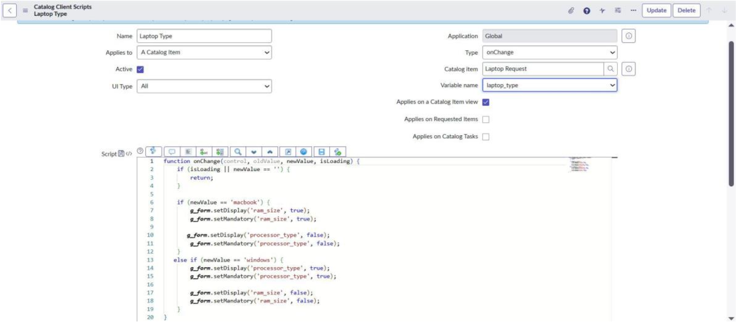 Path: Inside the Catalog Item → Catalog Client Scripts → New Name: Laptop Type