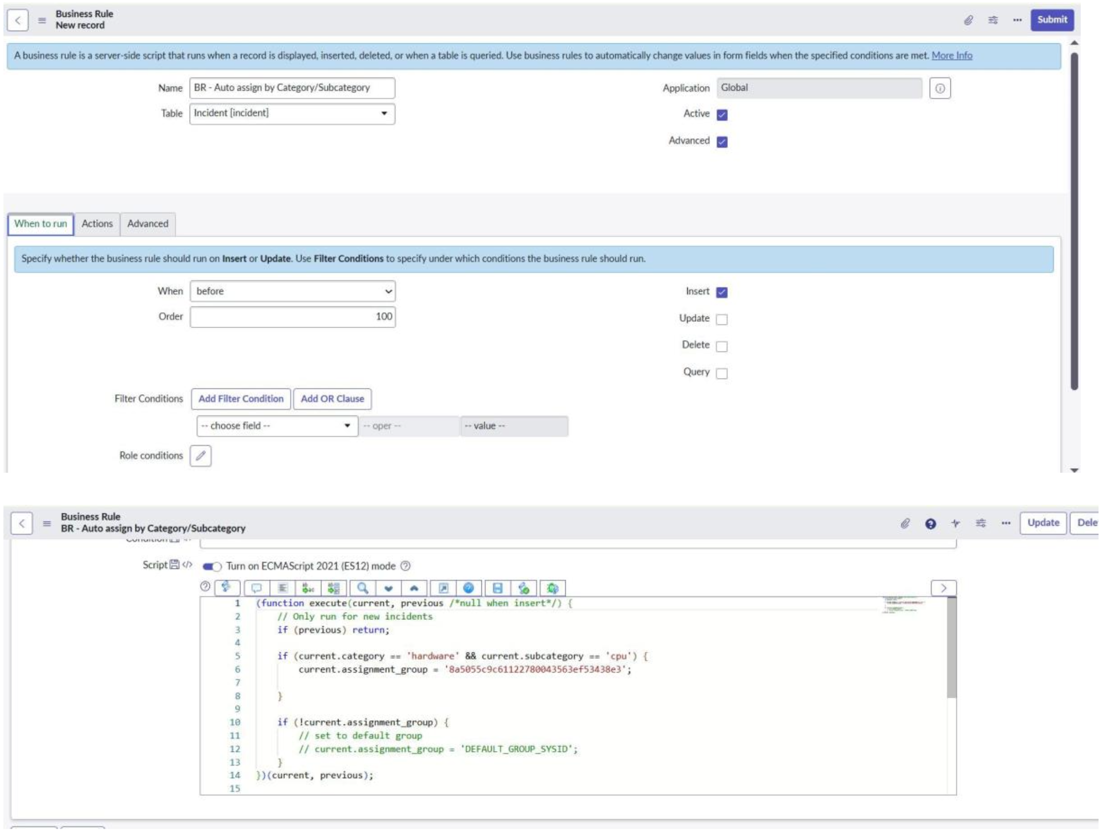 Scenario A : Auto-assign Incidents based on Category + Subcategory