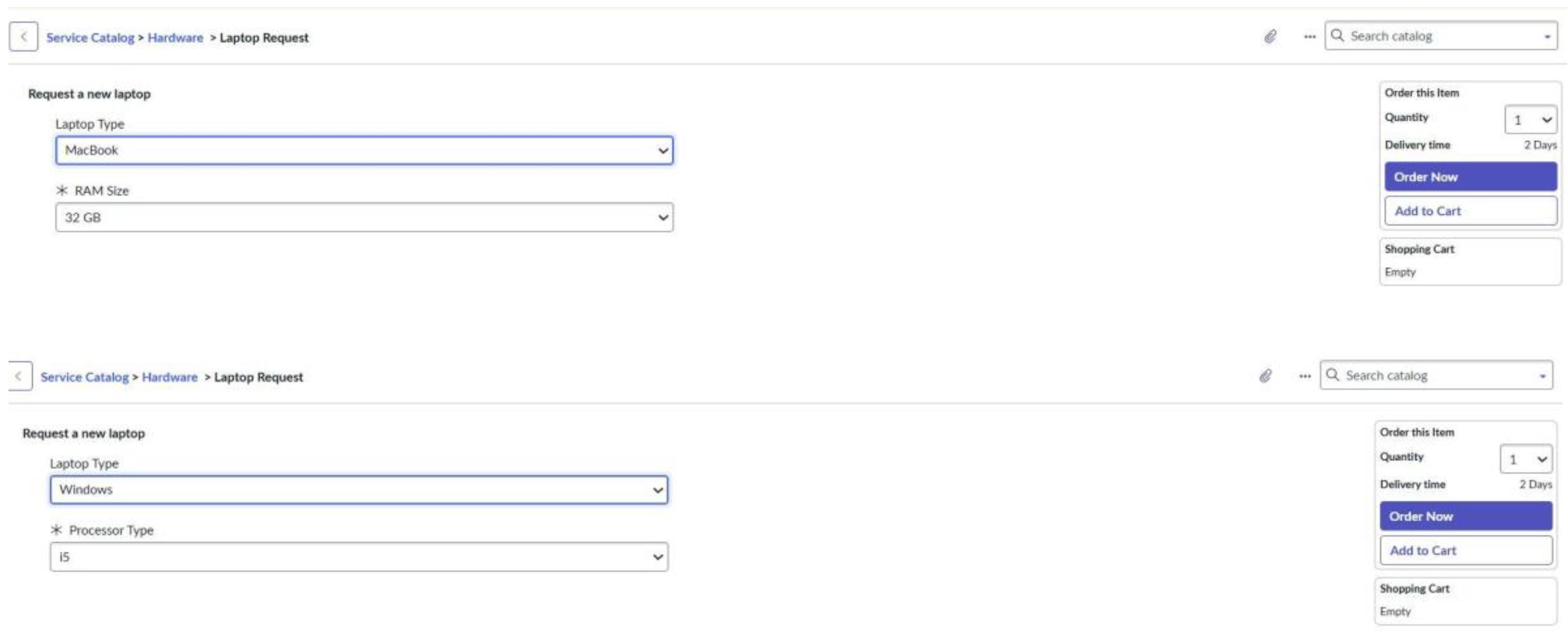 ➢ If Laptop Type = MacBook, show & make RAM Size mandatory
